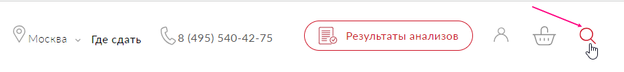 1. Для поиска исследований в верхнем правом углу кликнуть на иконку лупа
