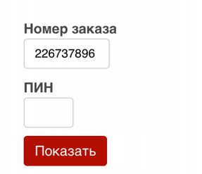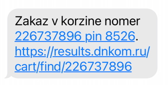 18. На телефон, указанный при оформлении заказа, придет СМС с номером заказа, ПИН-кодом и ссылкой для просмотра заказа.