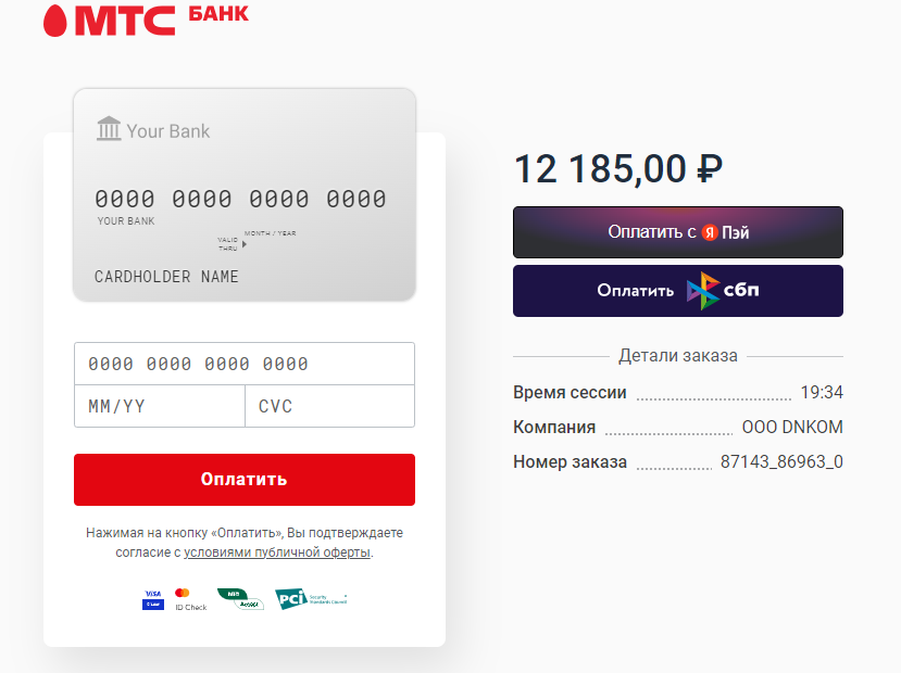 17. После того как вы кликните «ОТПРАВИТЬ ЗАКАЗ» система автоматически переведет вас на форму оплаты.